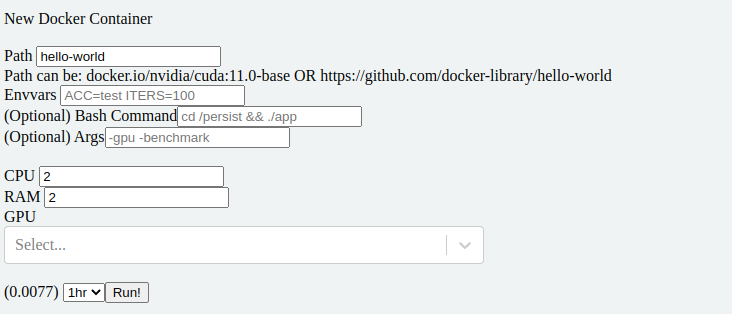 - Leave defaults. 2 CPU, 2 RAM, 0 GPU